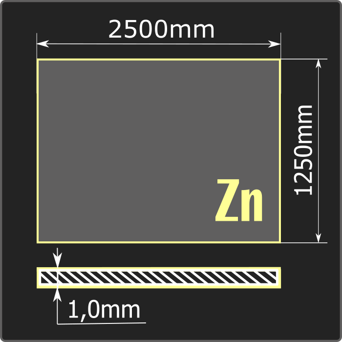 Лист стальной оцинкованный толщиной 1,0мм, шириной 1250мм и длиной 2500мм. Сталь 08пс. Соответствует требованиям ГОСТ 14918-2020.
